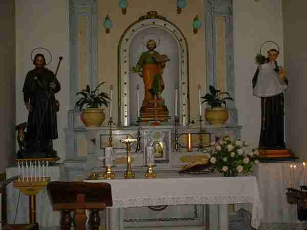 9. Intérieur de l' Eglise de S. Pietro à San Pietro. De gauche à droite, San Rocco (Saint Roch), San Pietro (Saint Pierre), Sant'Antonio da Padova (Saint Antoine de Padoue) (10/10/2004) |